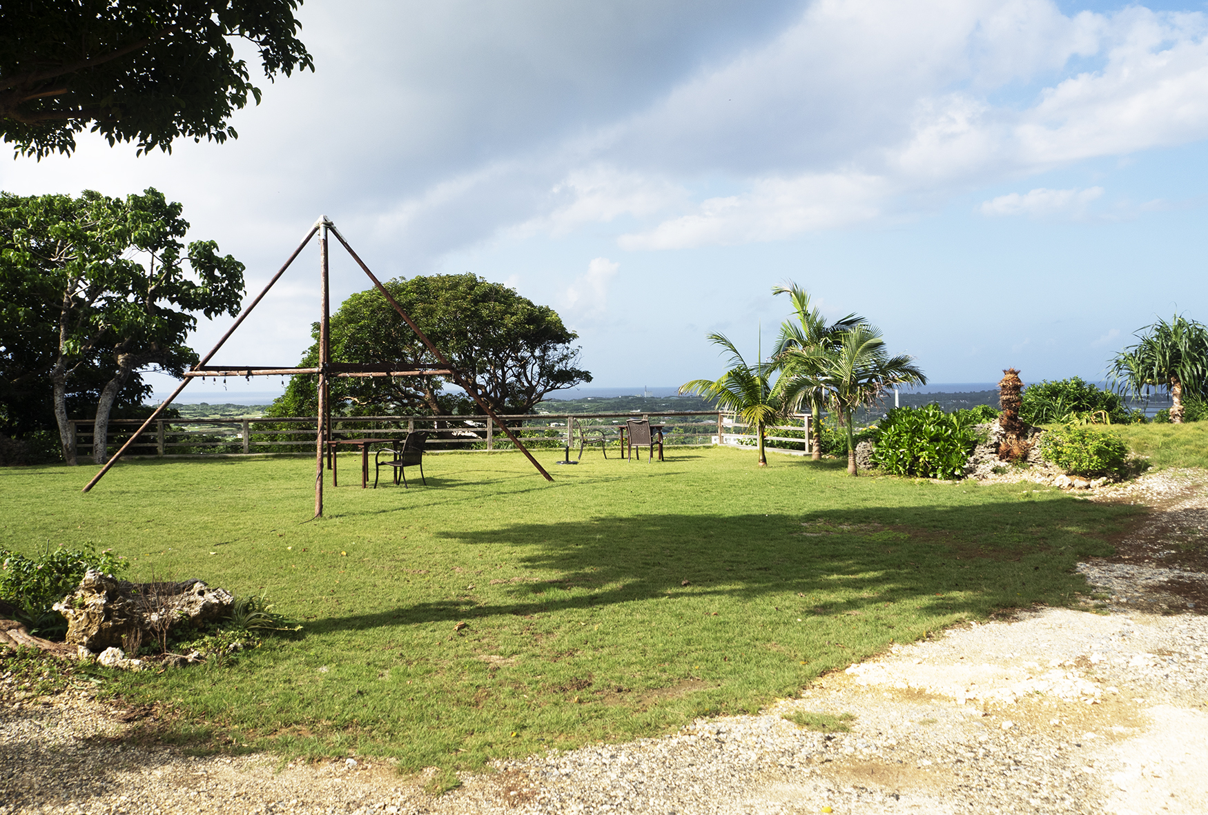 カフェテラスふぶ舎の近くの道はよく通りますが、まさかこのような場所があったとは予想外でした。お手入れされたお庭に海、空。どれも広くていつまでも眺めていられそうです。