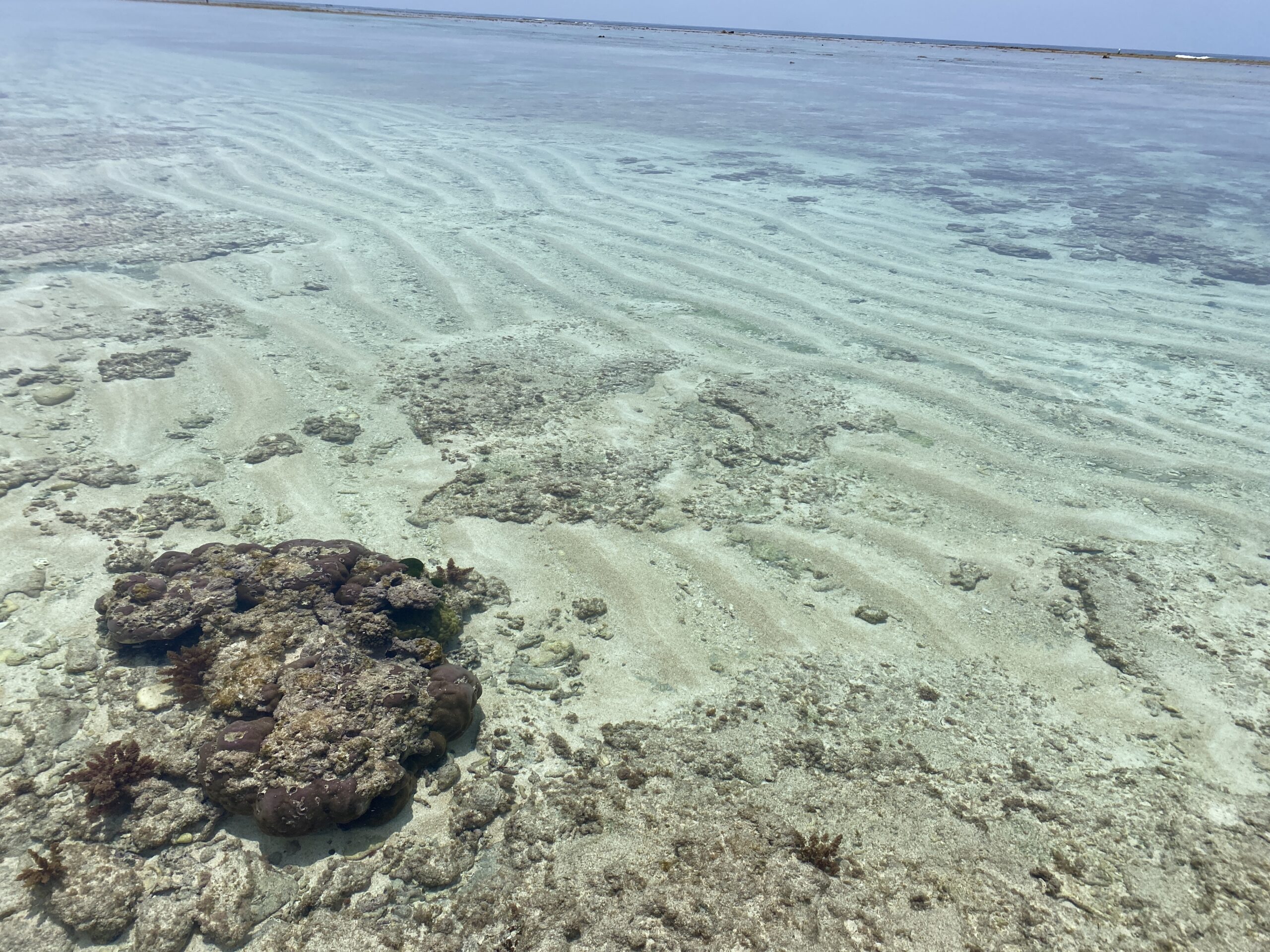 かつてはたくさんの枝サンゴがあったといいますが、1998年に起こった大規模な白化現象から減っていて、現在リーフの内側にはサンゴのガレ場があります。干潮の時間帯では時期にもよりますが、大人の膝くらいの水深なので、子どもと一緒に磯遊びをすることもできます。
