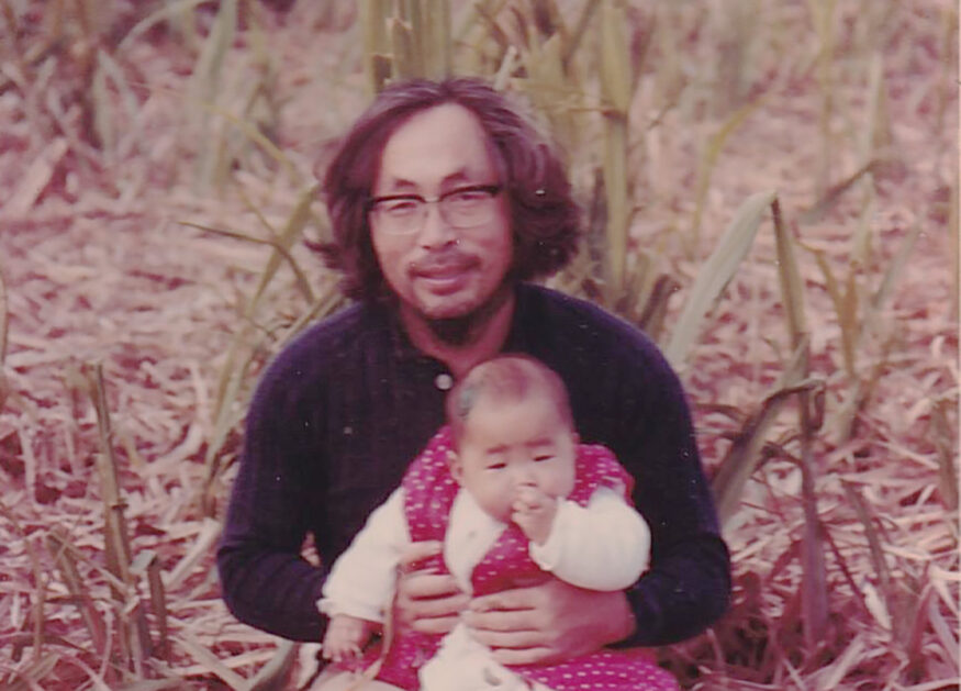 ▲お父さんと若菜さん(ヨロン島のきび畑にて)