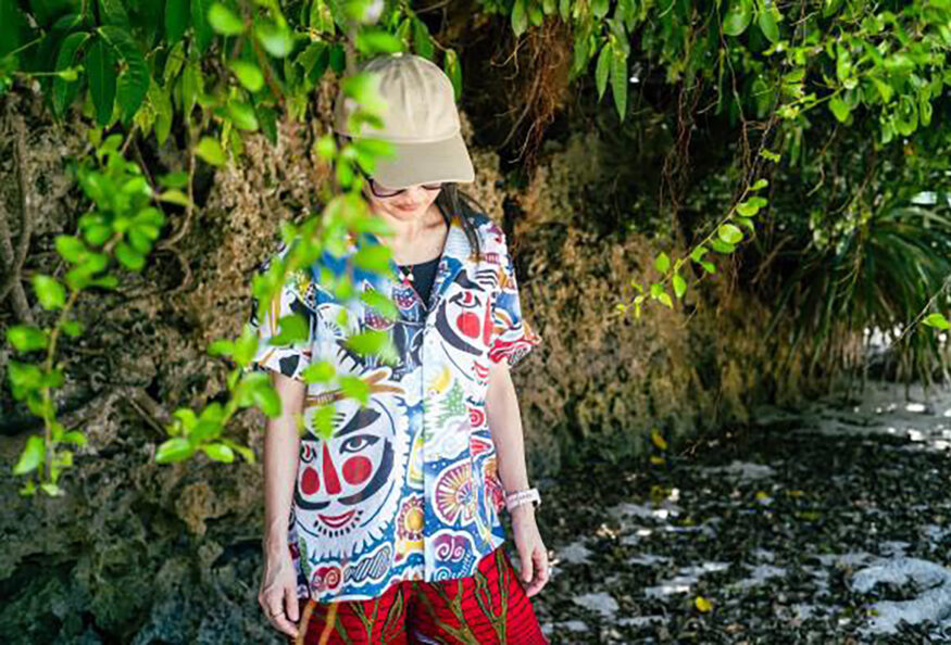 ヨロン島のことをデザインして、島外の人にもヨロン島の人にも「こういうところがあるんだよ」と見てもらうことかなって感じがして。 今はヨロン島のモチーフをいっぱいデザインして、それを染めていろんなアイテムを作っていきたいなって、そういう気持ちです。