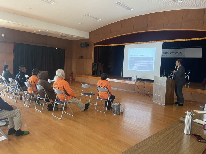 シンポジウムは、3部構成で開催。第一部では、昨年発表された団体を中心に、2025年の活動報告がされました。第二部では、NPO法人喜界島サンゴ礁科学研究所が行っている、ヨロン島一周サンゴ被度調査の内容の共有。特別企画として、NPO法人喜界島サンゴ礁科学研究所理事長、NPO法人海の再生ネットワークよろん理事長、与論町長の3名を迎えた、「海のこれまでとこれから」を考えるパネルディスカッションが行われました。